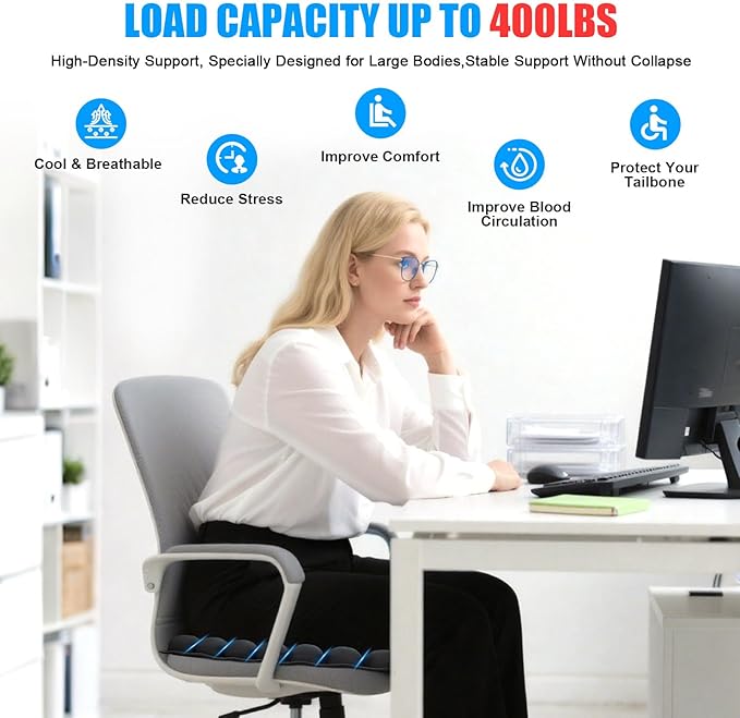 This seat cushion provides extra comfort while sitting for long hours. It helps reduce pressure on hips and lower back.