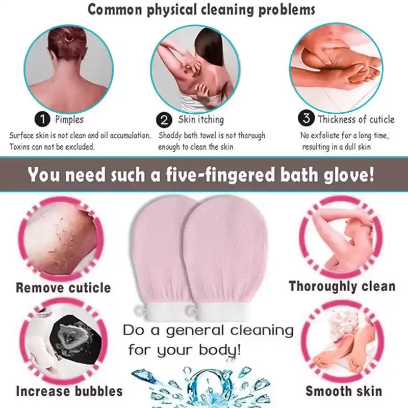 Gloves effectively scrub away dead skin cells, revealing fresh and healthy skin underneath. Regular use improves skin texture and prevents buildup.