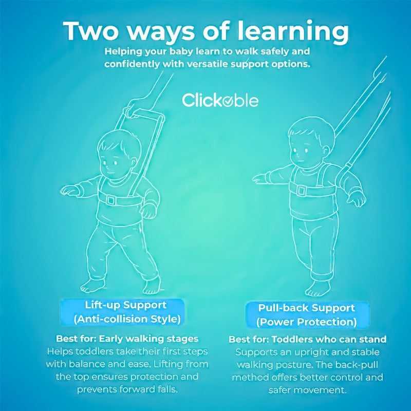 The walking belt features 360° rotatable handles that allow parents to guide their baby from any direction. This provides more flexibility and ease while walking.