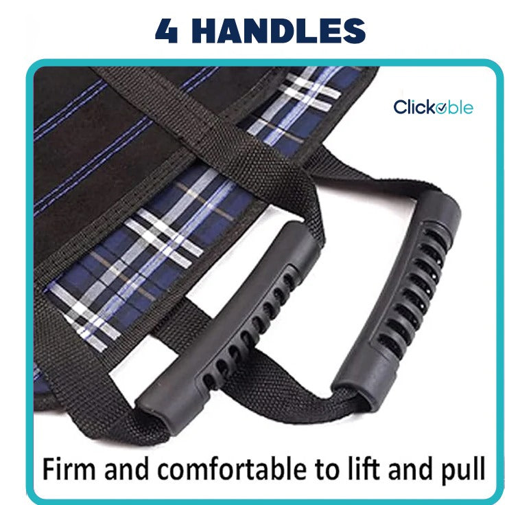 Equipped with multiple reinforced handles on all sides for easy grip. This allows 2–4 people to lift the patient comfortably, reducing strain on caregivers.